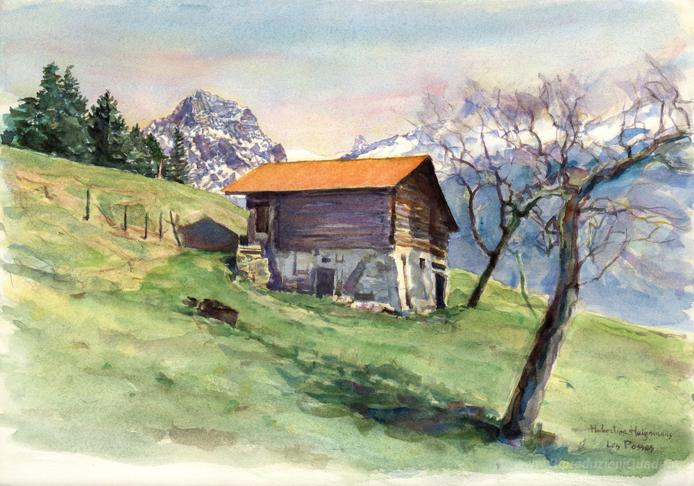 Ti offriamo una riproduzione artigianale su tela dell'opera famosa 'Montagna granaio a 'Les Posses' situata sopra Gryon' di Hubertine Heijermans, dal Museo delle Riproduzioni.