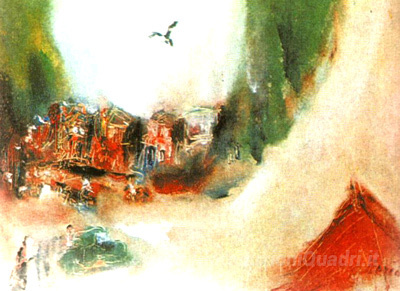Ti offriamo una riproduzione artigianale su tela dell'opera famosa 'Montagna Hamlet' di Margareta Sterian, dal Museo delle Riproduzioni.