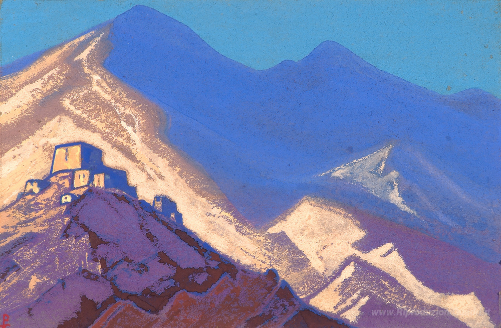 In questa magistrale composizione, il contrasto tra le montagne blu scuro e gli edifici che si adagiano dolcemente sulle colline conferisce una sensazione di calma e riflessione, rendendo il dipinto ideale per arricchire qualsiasi spazio abitativo. La tecnica a olio utilizzata da Roerich esalta ogni dettaglio, assicurando che l'opera si integri perfettamente nel tuo ambiente, trasformando ogni stanza in un luogo di bellezza e ispirazione.