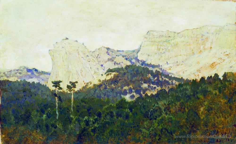 Ti offriamo una riproduzione artigianale su tela dell'opera famosa 'Montagne. Crimea.' di Isaac Levitan, dal Museo delle Riproduzioni.