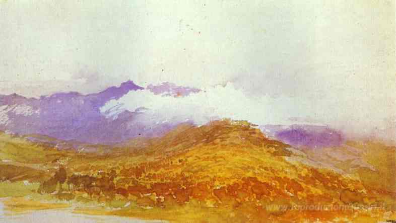 Ti offriamo una riproduzione artigianale su tela dell'opera famosa 'Montagne di Crimea in autunno' di Fyodor Vasilyev, dal Museo delle Riproduzioni.