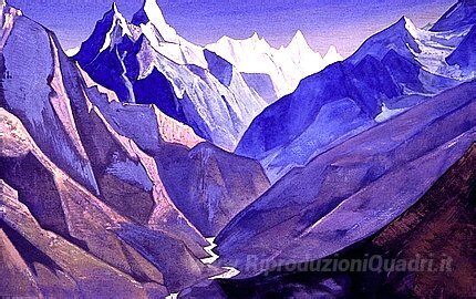 Ti offriamo una riproduzione artigianale su tela dell'opera famosa 'Montagne' di Nicholas Roerich, dal Museo delle Riproduzioni.