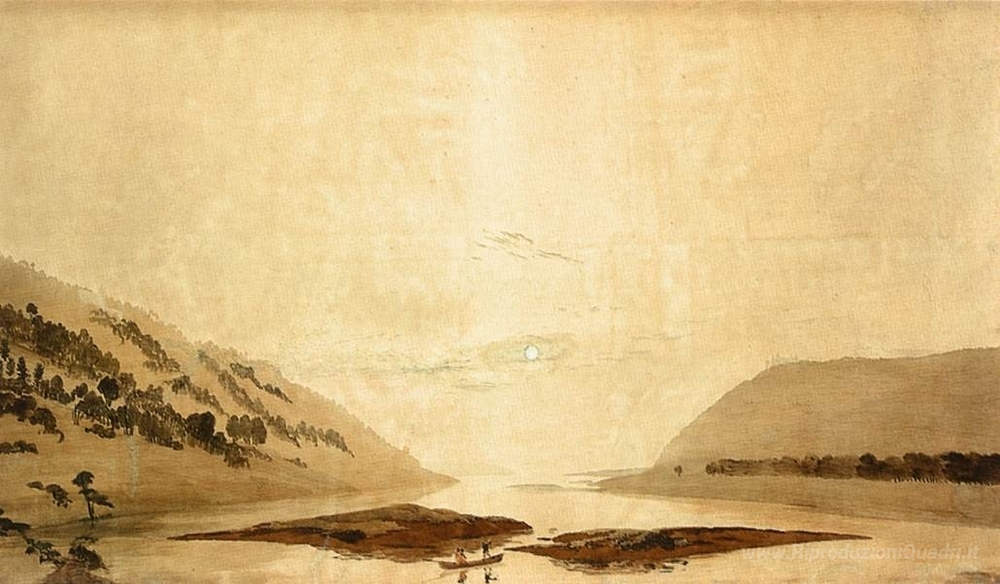 Ti offriamo una riproduzione artigianale su tela dell'opera famosa 'Montagnoso Paesaggio fluviale' di Caspar David Friedrich, dal Museo delle Riproduzioni.