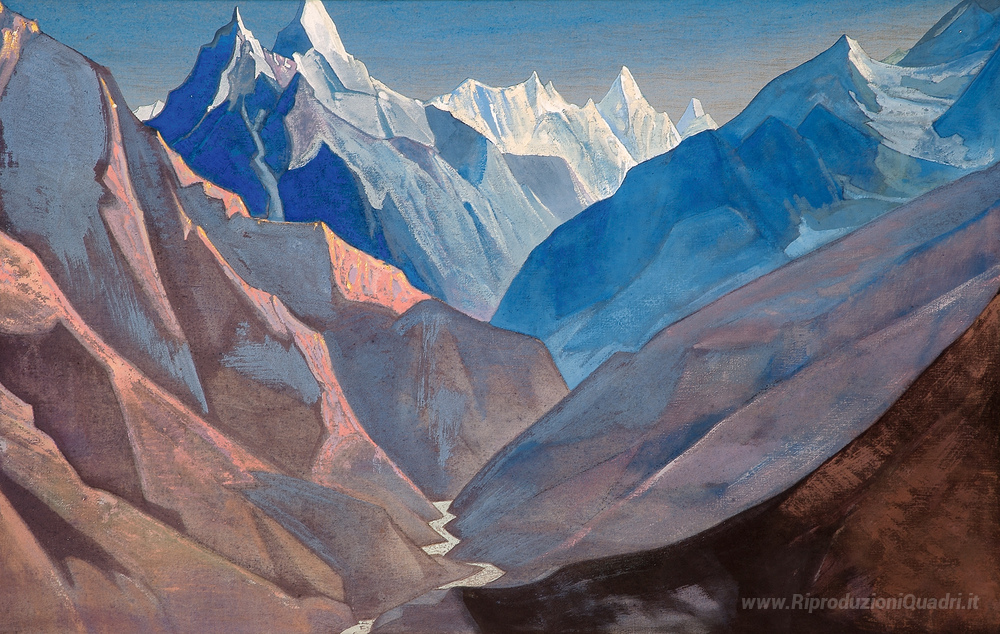 Ti offriamo una riproduzione artigianale su tela dell'opera famosa 'Monte "M"' di Nicholas Roerich, dal Museo delle Riproduzioni.