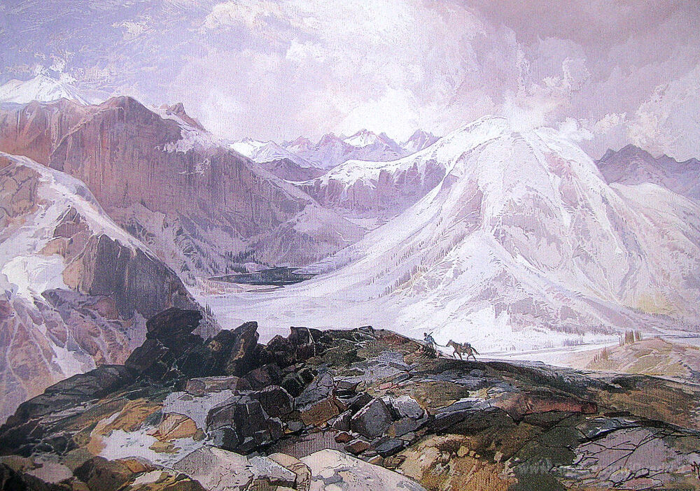 Ti offriamo una riproduzione artigianale su tela dell'opera famosa 'Mosquito Trail, Montagne Rocciose, in Colorado' di Thomas Moran, dal Museo delle Riproduzioni.