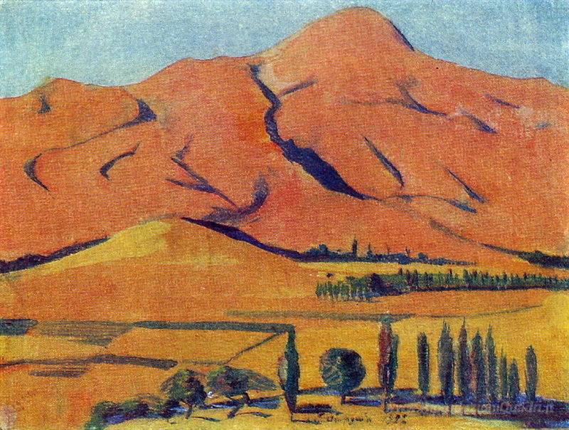 Ti offriamo una riproduzione artigianale su tela dell'opera famosa 'Mount Shamiram' di Martiros Saryan, dal Museo delle Riproduzioni.