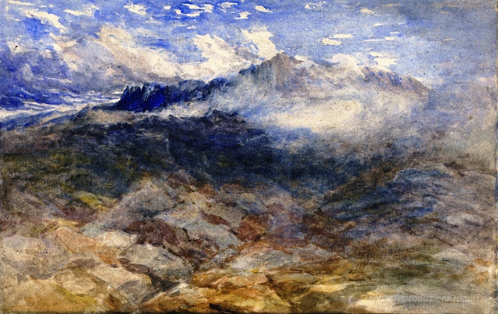 Ti offriamo una riproduzione artigianale su tela dell'opera famosa 'Mountain Heights, Cader Idris' di David Cox, dal Museo delle Riproduzioni.