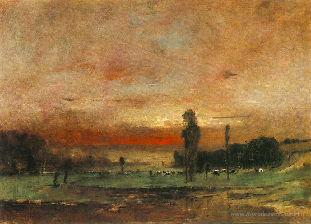 Ti offriamo una riproduzione artigianale su tela dell'opera famosa 'Mucche al pascolo' di Mihaly Munkacsy, dal Museo delle Riproduzioni.