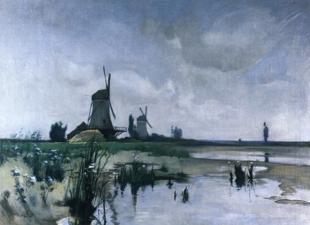 Ti offriamo una riproduzione artigianale su tela dell'opera famosa 'Mulini a vento' di John Henry Twachtman, dal Museo delle Riproduzioni.
