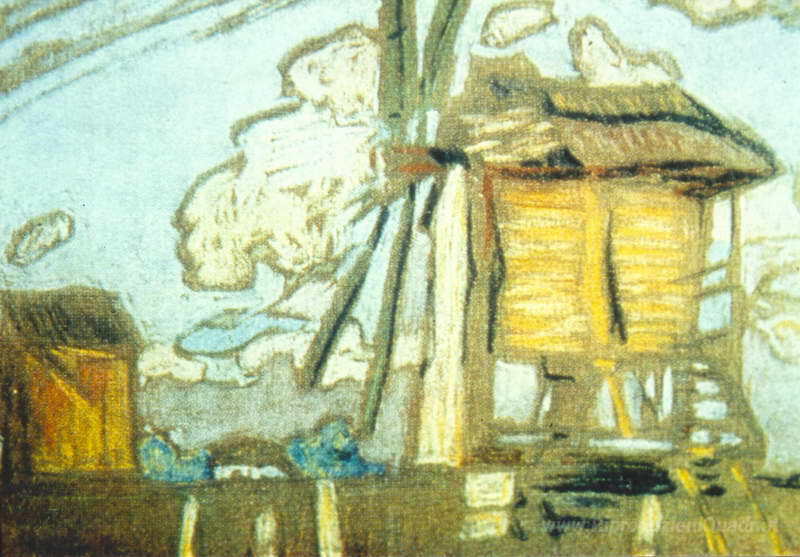 Ti offriamo una riproduzione artigianale su tela dell'opera famosa 'Mulino a vento' di Nicholas Roerich, dal Museo delle Riproduzioni.