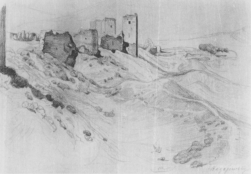 Ti offriamo una riproduzione artigianale su tela dell'opera famosa 'Mura e torri di Soldai' di Konstantin Bogaevsky, dal Museo delle Riproduzioni.