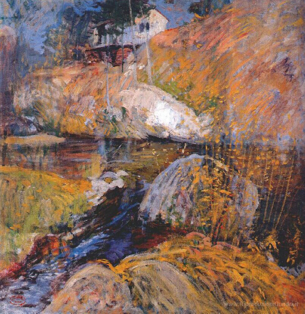 Ti offriamo una riproduzione artigianale su tela dell'opera famosa 'My Summer Studio' di John Henry Twachtman, dal Museo delle Riproduzioni.