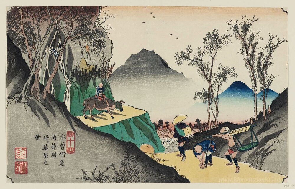 Ti offriamo una riproduzione artigianale su tela dell'opera famosa 'N ° 44, Magome Stazione' di Keisai Eisen, dal Museo delle Riproduzioni.