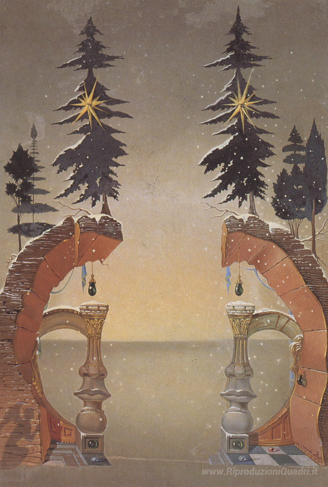 Ti offriamo una riproduzione artigianale su tela dell'opera famosa 'Natale (Noel)' di Salvador Dali, dal Museo delle Riproduzioni.