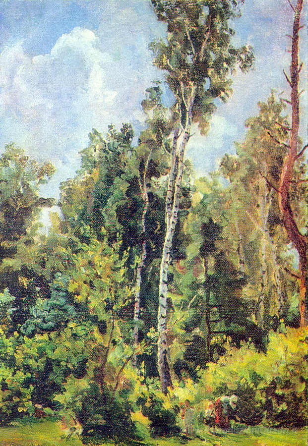 Ti offriamo una riproduzione artigianale su tela dell'opera famosa 'Nei boschi' di Pyotr Konchalovsky, dal Museo delle Riproduzioni.