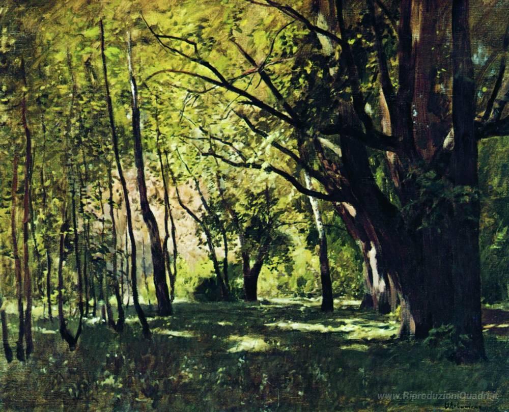 Ti offriamo una riproduzione artigianale su tela dell'opera famosa 'Nel parco' di Isaac Levitan, dal Museo delle Riproduzioni.