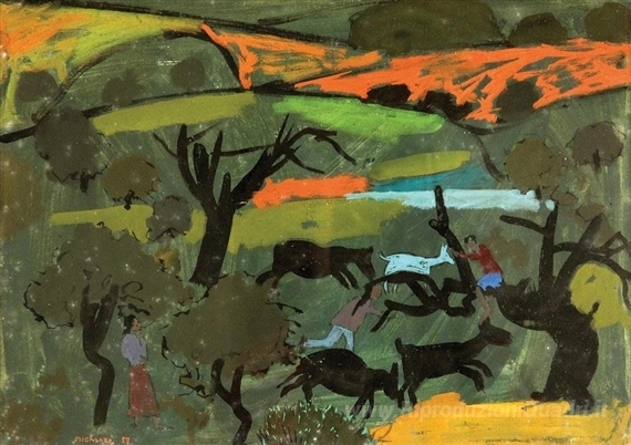 Ti offriamo una riproduzione artigianale su tela dell'opera famosa 'Nel villaggio' di Grégoire Michonze, dal Museo delle Riproduzioni.