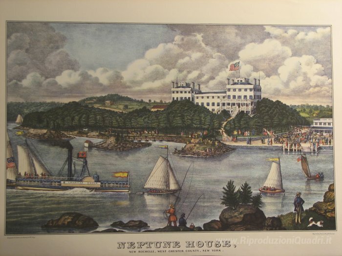 Ti offriamo una riproduzione artigianale su tela dell'opera famosa 'Nettuno Casa' di Currier and Ives, dal Museo delle Riproduzioni.