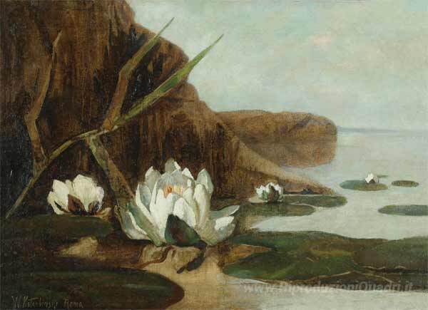 Ti offriamo una riproduzione artigianale su tela dell'opera famosa 'Ninfee' di Wilhelm Kotarbinski, dal Museo delle Riproduzioni.