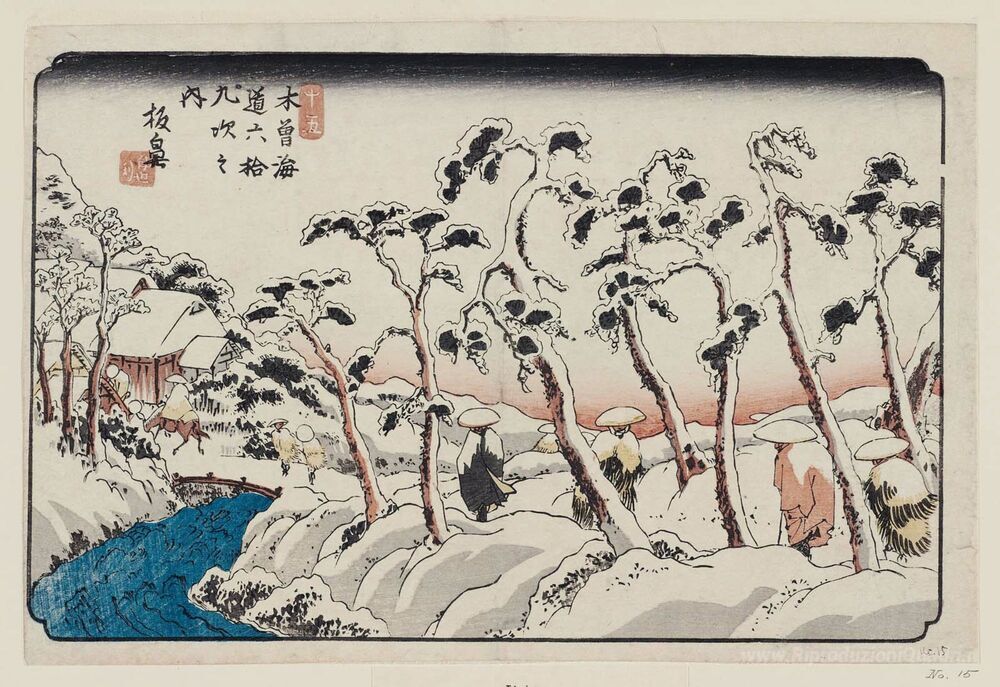 Ti offriamo una riproduzione artigianale su tela dell'opera famosa 'No. 15, Itahana, dalla serie The Sessantanove stazioni della Kis' di Keisai Eisen, dal Museo delle Riproduzioni.