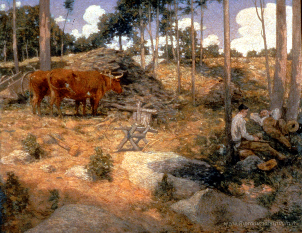Ti offriamo una riproduzione artigianale su tela dell'opera famosa 'Noonday Resto nel New England' di Julian Alden Weir, dal Museo delle Riproduzioni.
