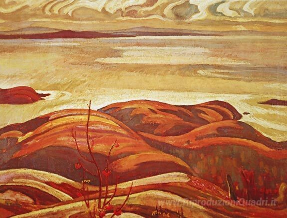 Ti offriamo una riproduzione artigianale su tela dell'opera famosa 'North Shore, Lake Superior' di A.Y. Jackson, dal Museo delle Riproduzioni.