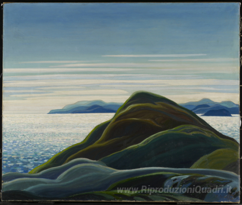 Ti offriamo una riproduzione artigianale su tela dell'opera famosa 'North Shore, Lake Superior' di Franklin Carmichael, dal Museo delle Riproduzioni.