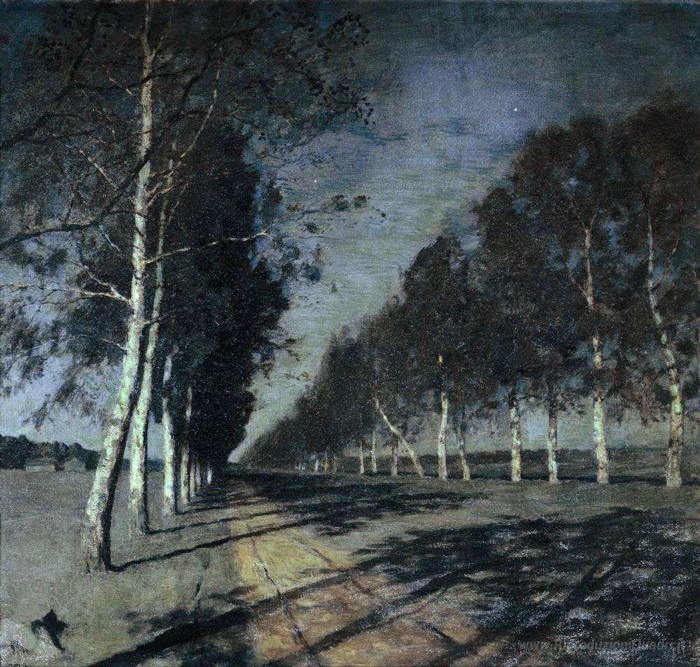 Ti offriamo una riproduzione artigianale su tela dell'opera famosa 'Notte al chiaro di luna. Un villaggio.' di Isaac Levitan, dal Museo delle Riproduzioni.