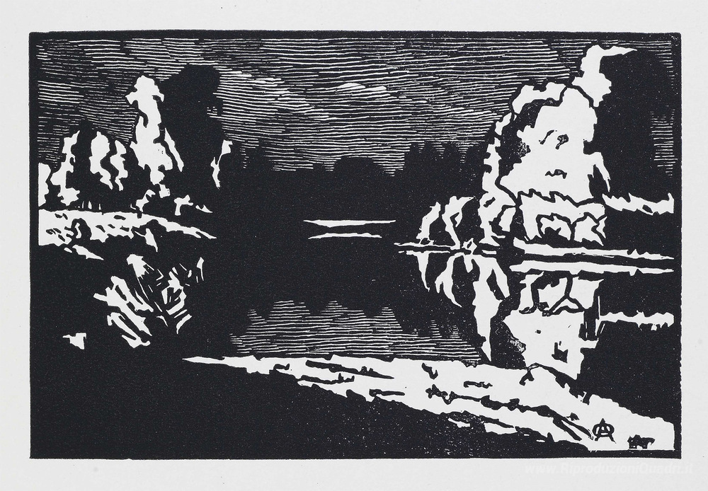 Ti offriamo una riproduzione artigianale su tela dell'opera famosa 'Notte di luna paesaggio' di Anna Ostroumova-Lebedeva, dal Museo delle Riproduzioni.