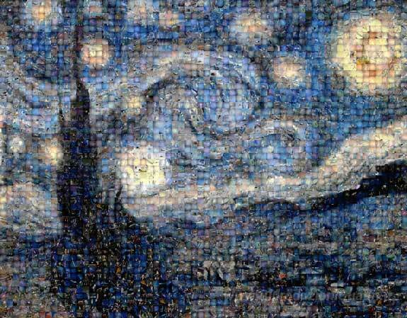 Ti offriamo una riproduzione artigianale su tela dell'opera famosa 'Notte stellata' di Robert Silvers, dal Museo delle Riproduzioni.