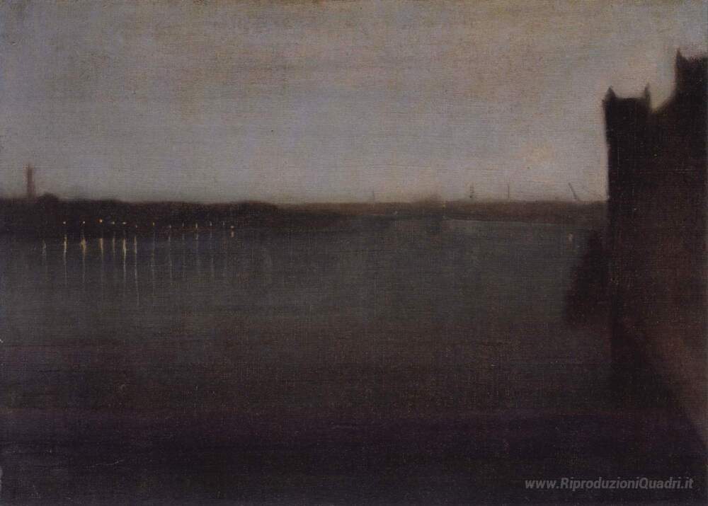 Ti offriamo una riproduzione artigianale su tela dell'opera famosa 'Notturno, Grigio e oro' di James McNeill Whistler, dal Museo delle Riproduzioni.