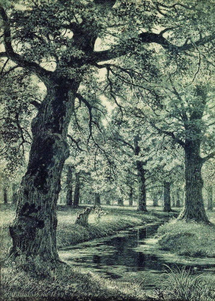 Ti offriamo una riproduzione artigianale su tela dell'opera famosa 'Oak Grove' di Ivan Shishkin, dal Museo delle Riproduzioni.