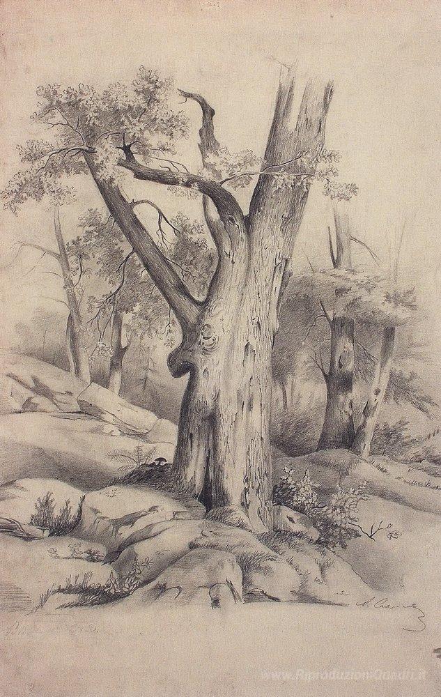 Ti offriamo una riproduzione artigianale su tela dell'opera famosa 'Oak' di Aleksey Savrasov, dal Museo delle Riproduzioni.