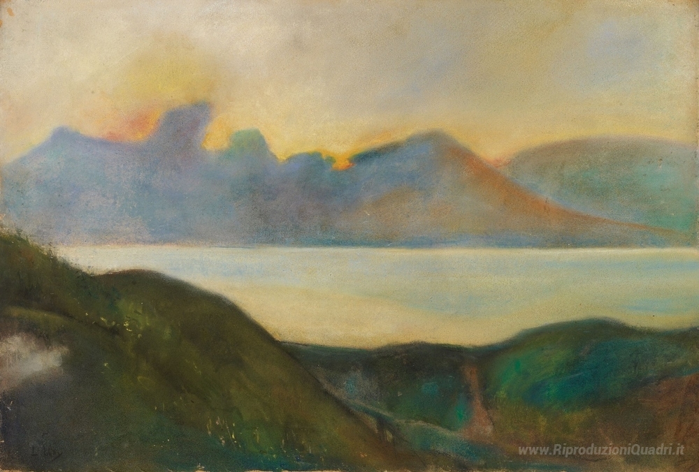 Ti offriamo una riproduzione artigianale su tela dell'opera famosa 'Oberitalienischer Gebirgssee' di Lesser Ury, dal Museo delle Riproduzioni.