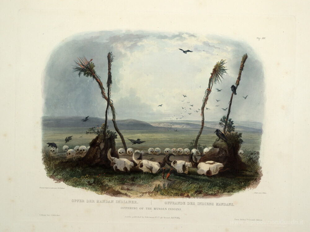 Ti offriamo una riproduzione artigianale su tela dell'opera famosa 'Offerta degli indiani Mandan, piatto 14 dal volume 1 "Travels in' di Karl Bodmer, dal Museo delle Riproduzioni.