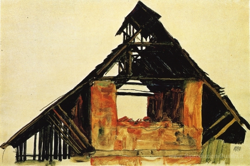 Ti offriamo una riproduzione artigianale su tela dell'opera famosa 'Old Brick House in Carinzia' di Egon Schiele, dal Museo delle Riproduzioni.