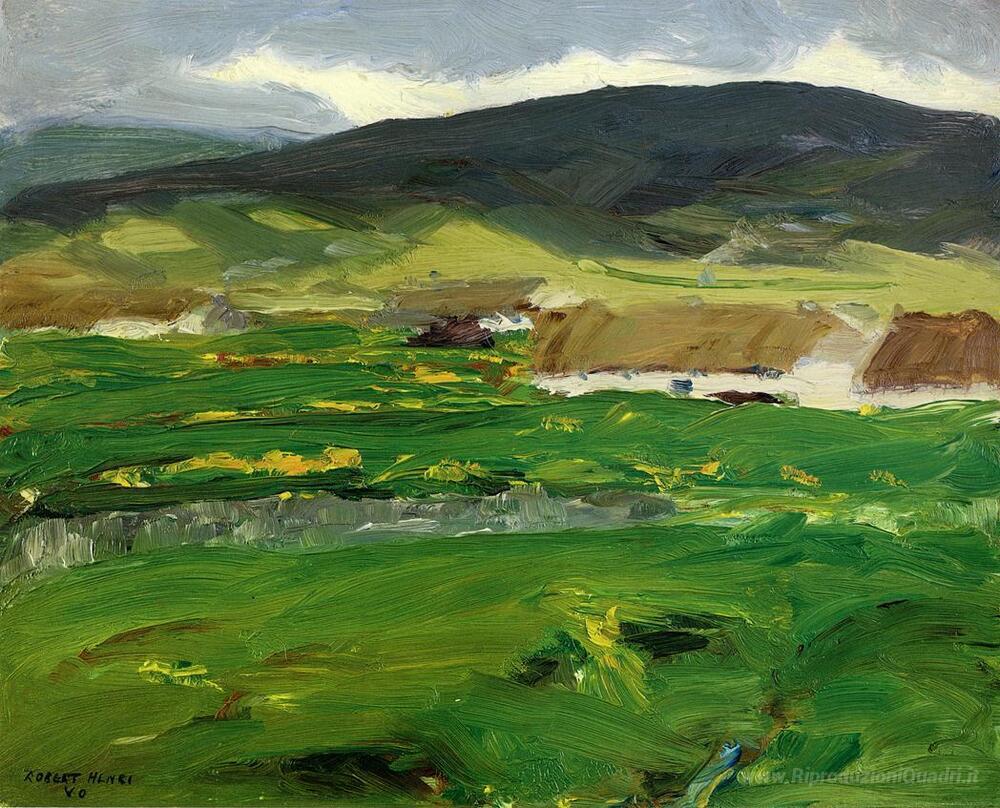 Ti offriamo una riproduzione artigianale su tela dell'opera famosa 'O'Malley casa (Achill Island, Contea di Mayo, Irlanda)' di Robert Henri, dal Museo delle Riproduzioni.