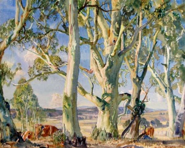 Scopri il fascino senza tempo dei dipinti a olio attraverso l’opera di Hans Heysen, un maestro dell'arte paesaggistica italiana. Il suo capolavoro, On The Edge Of The Bush, cattura l'essenza della natura con una raffinatezza che rende ogni dettaglio palpabile. Heysen, noto per la sua abilità nell'uso della luce e del colore, riesce a trasmettere una straordinaria atmosfera di serenità e contemplazione, invitando lo spettatore a immergersi nella bellezza del paesaggio australiano.