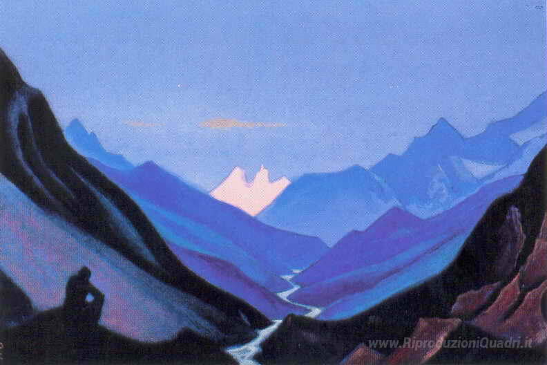 Ti offriamo una riproduzione artigianale su tela dell'opera famosa 'Ordine del Maestro' di Nicholas Roerich, dal Museo delle Riproduzioni.