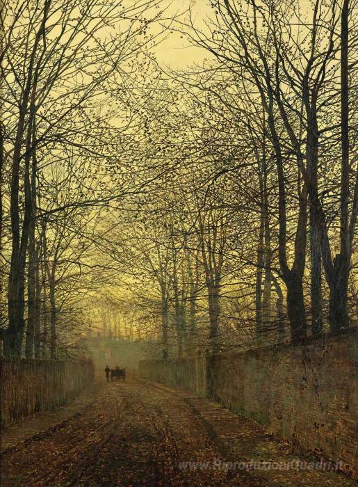 Ti offriamo una riproduzione artigianale su tela dell'opera famosa 'Oro ottobre' di John Atkinson Grimshaw, dal Museo delle Riproduzioni.
