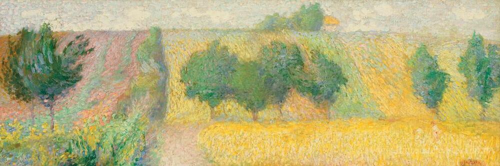 Ti offriamo una riproduzione artigianale su tela dell'opera famosa 'Paesaggio a Giverny' di Samuel Mutzner, dal Museo delle Riproduzioni.