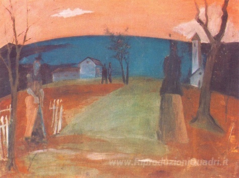 Ti offriamo una riproduzione artigianale su tela dell'opera famosa 'Paesaggio al crepuscolo' di Istvan Farkas, dal Museo delle Riproduzioni.
