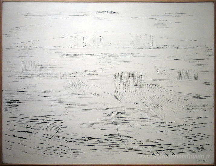 Ti offriamo una riproduzione artigianale su tela dell'opera famosa 'Paesaggio Bianco' di Kazuo Nakamura, dal Museo delle Riproduzioni.