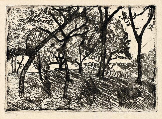 Ti offriamo una riproduzione artigianale su tela dell'opera famosa 'Paesaggio con alberi' di Paula Modersohn-Becker, dal Museo delle Riproduzioni.