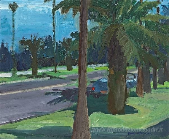 Ti offriamo una riproduzione artigianale su tela dell'opera famosa 'Paesaggio con alberi, Santa Monica' di Paul Wonner, dal Museo delle Riproduzioni.