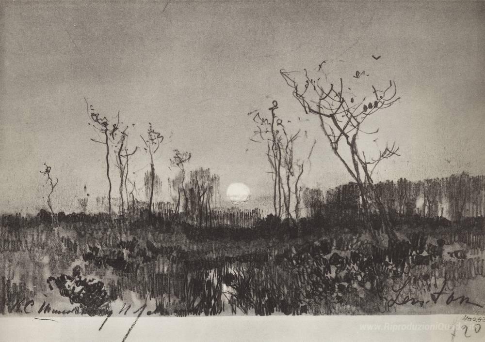 Ti offriamo una riproduzione artigianale su tela dell'opera famosa 'Paesaggio con la luna' di Isaac Levitan, dal Museo delle Riproduzioni.