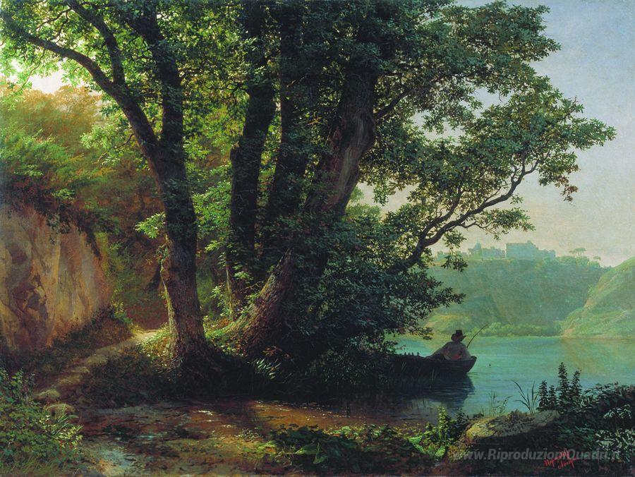 Ti offriamo una riproduzione artigianale su tela dell'opera famosa 'Paesaggio con lago' di Lev Lagorio, dal Museo delle Riproduzioni.