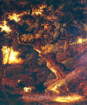Ti offriamo una riproduzione artigianale su tela dell'opera famosa 'Paesaggio con mucche e figura umana' di Thomas Gainsborough, dal Museo delle Riproduzioni.
