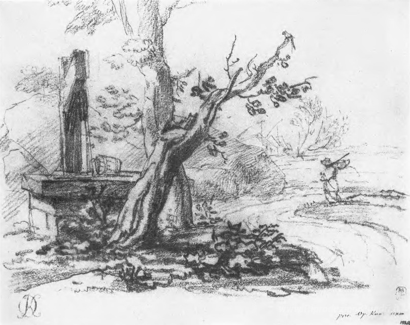 Ti offriamo una riproduzione artigianale su tela dell'opera famosa 'Paesaggio con un pozzo' di Orest Kiprensky, dal Museo delle Riproduzioni.