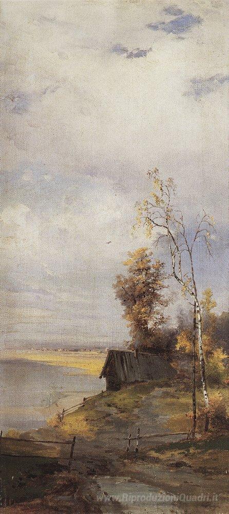 Ti offriamo una riproduzione artigianale su tela dell'opera famosa 'Paesaggio con una casa' di Aleksey Savrasov, dal Museo delle Riproduzioni.